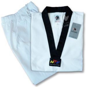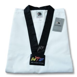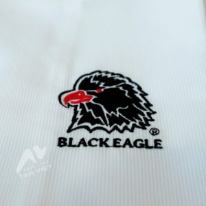 Võ phục Taekwondo cổ đen vải sọc hiệu Black Eagle cao cấp